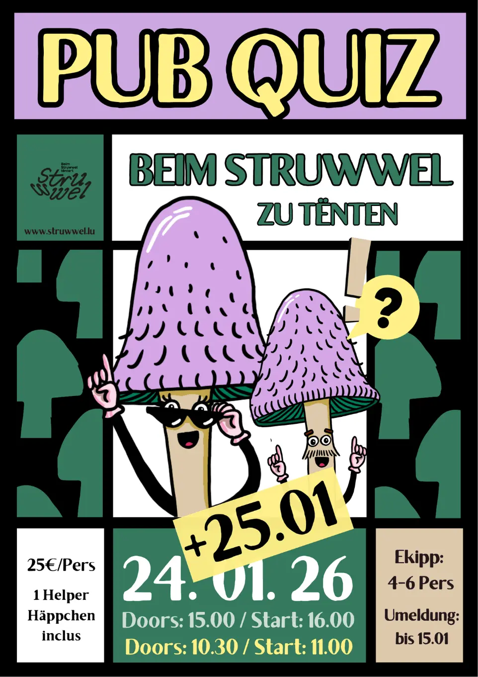 De Struwweltëntert invitéiert op säin éischte Quizowend a sengem gemittleche Café zu Tënten! Stellt äert Wëssen – a vläicht och äert Kennen 😉 – an Ekippe vu 4 bis 6 Leit a spannende „Top Secret“-Kategorien op d’Prouf.